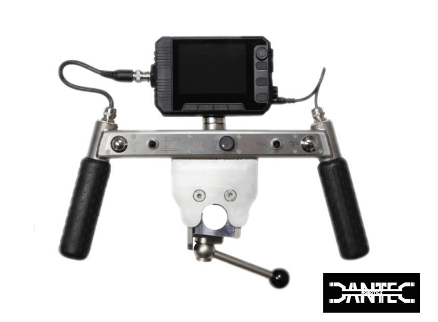 Joystick di lavorazione con comandi e aggancio per cavo di spinta.